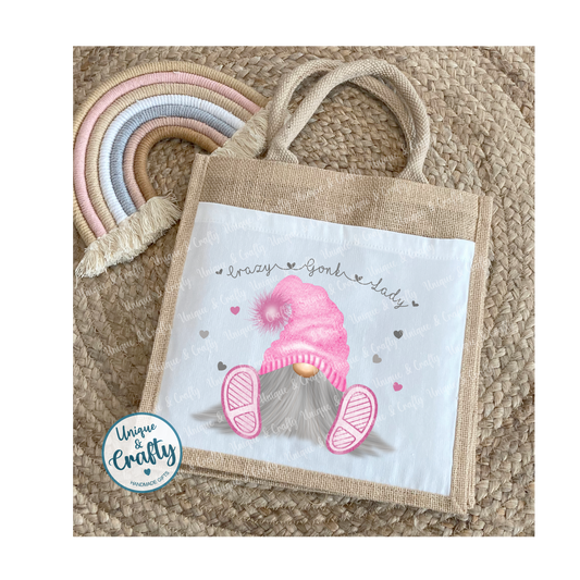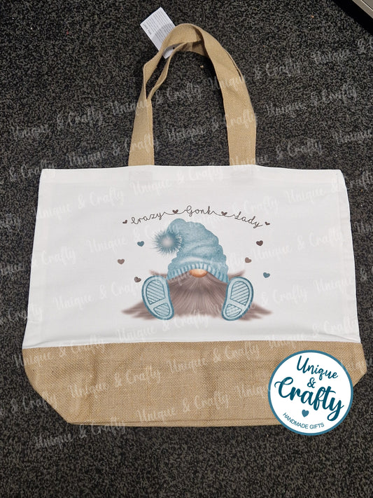 Crazy Gonk Lady... gnome large Jute tote