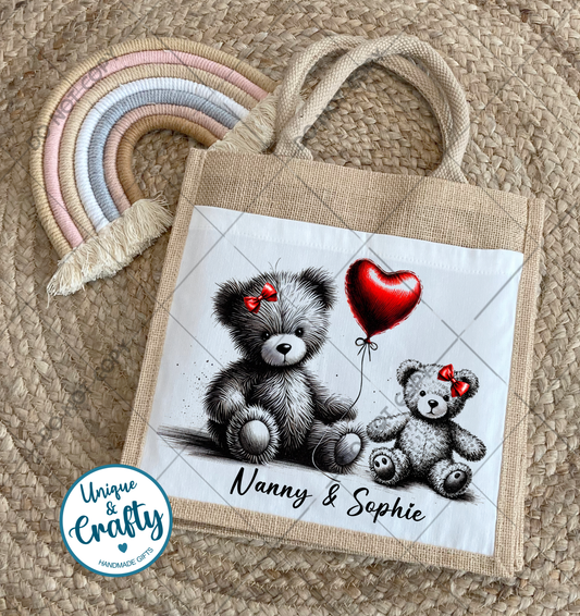 Mummy & Me Jute Small.. Mothers day, lunch bag, shopping