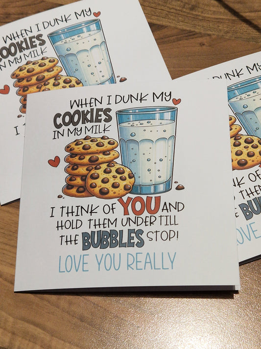 When I dunk my cookies.. Valentine's Day Card. Funny Humour 6x6in cards.