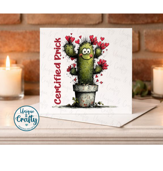 Valentines Cards prickle.. Adult Funny Humour 6x6in cards.