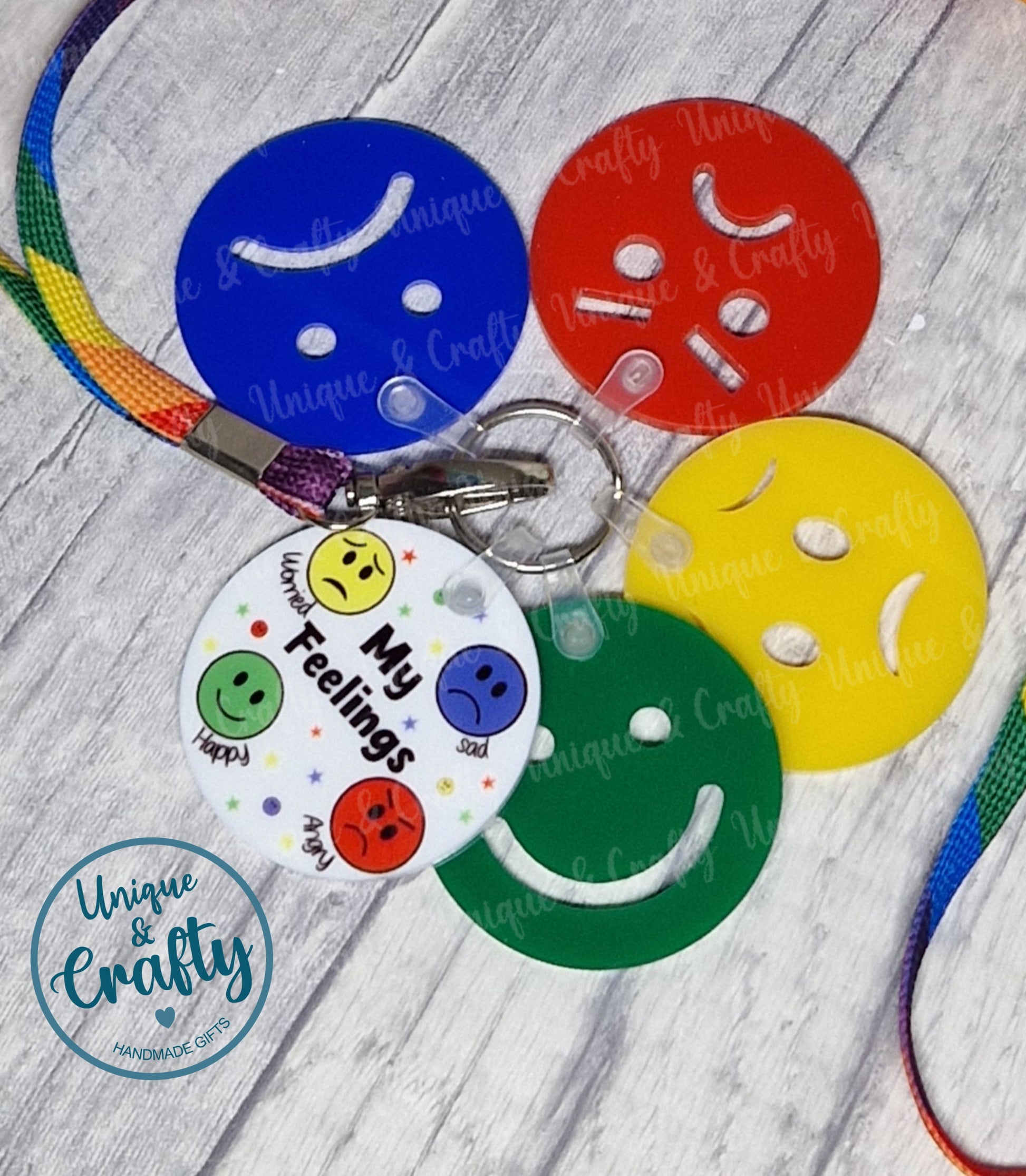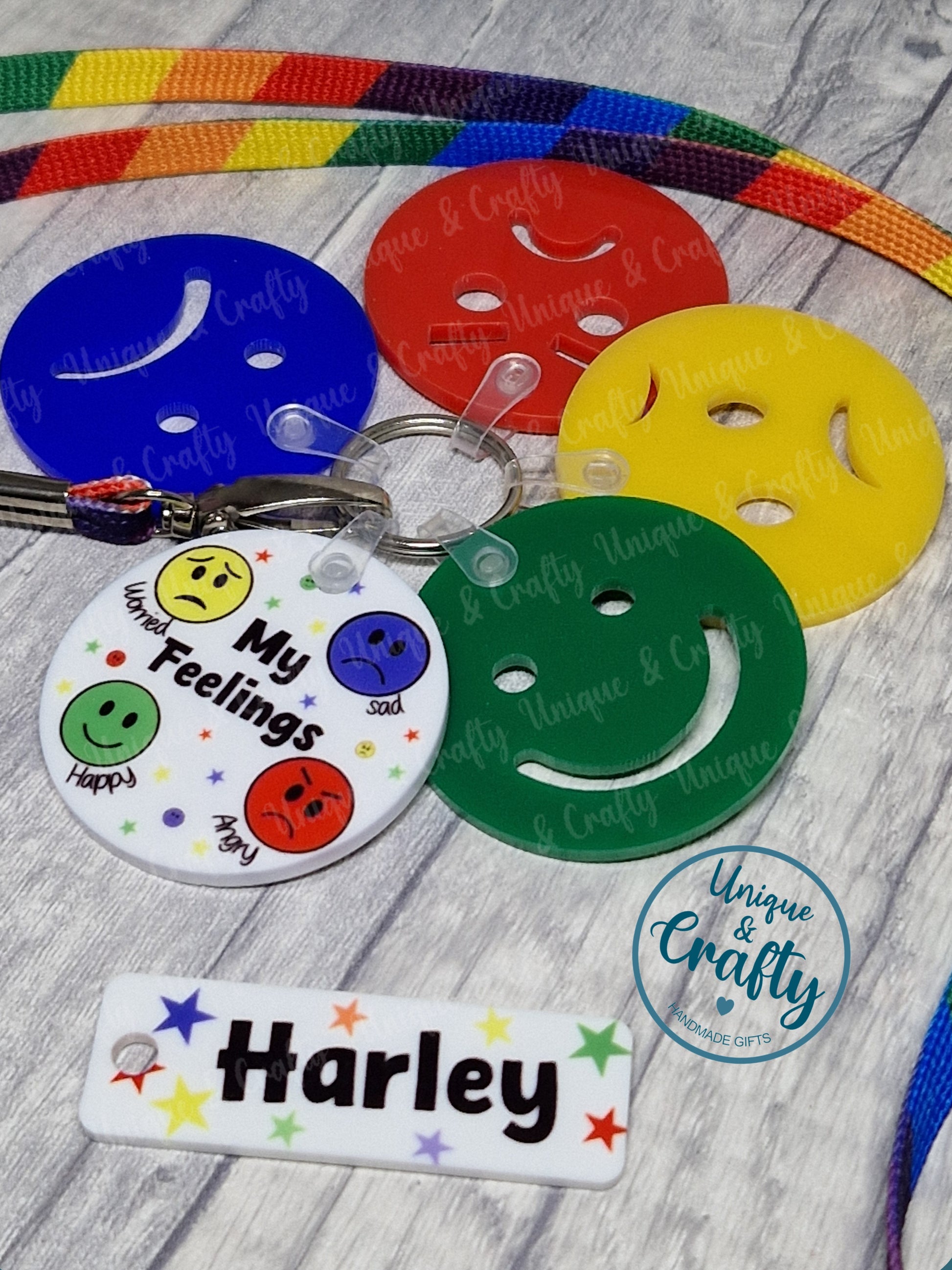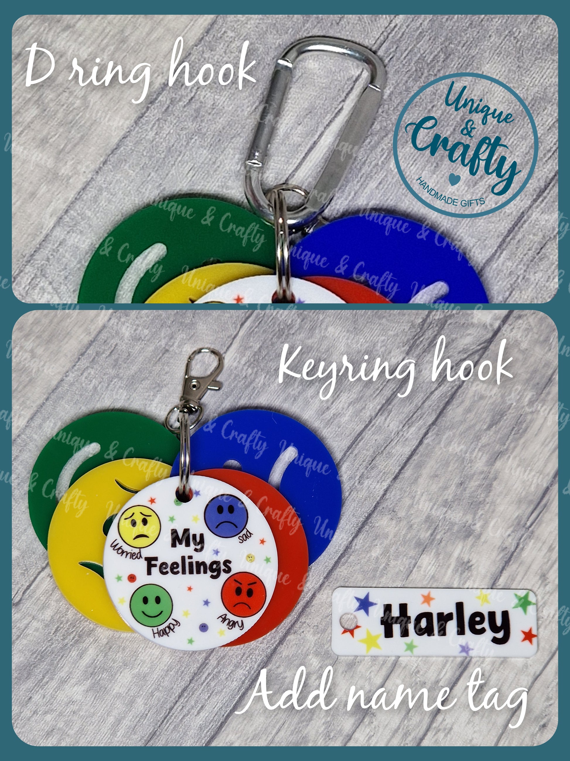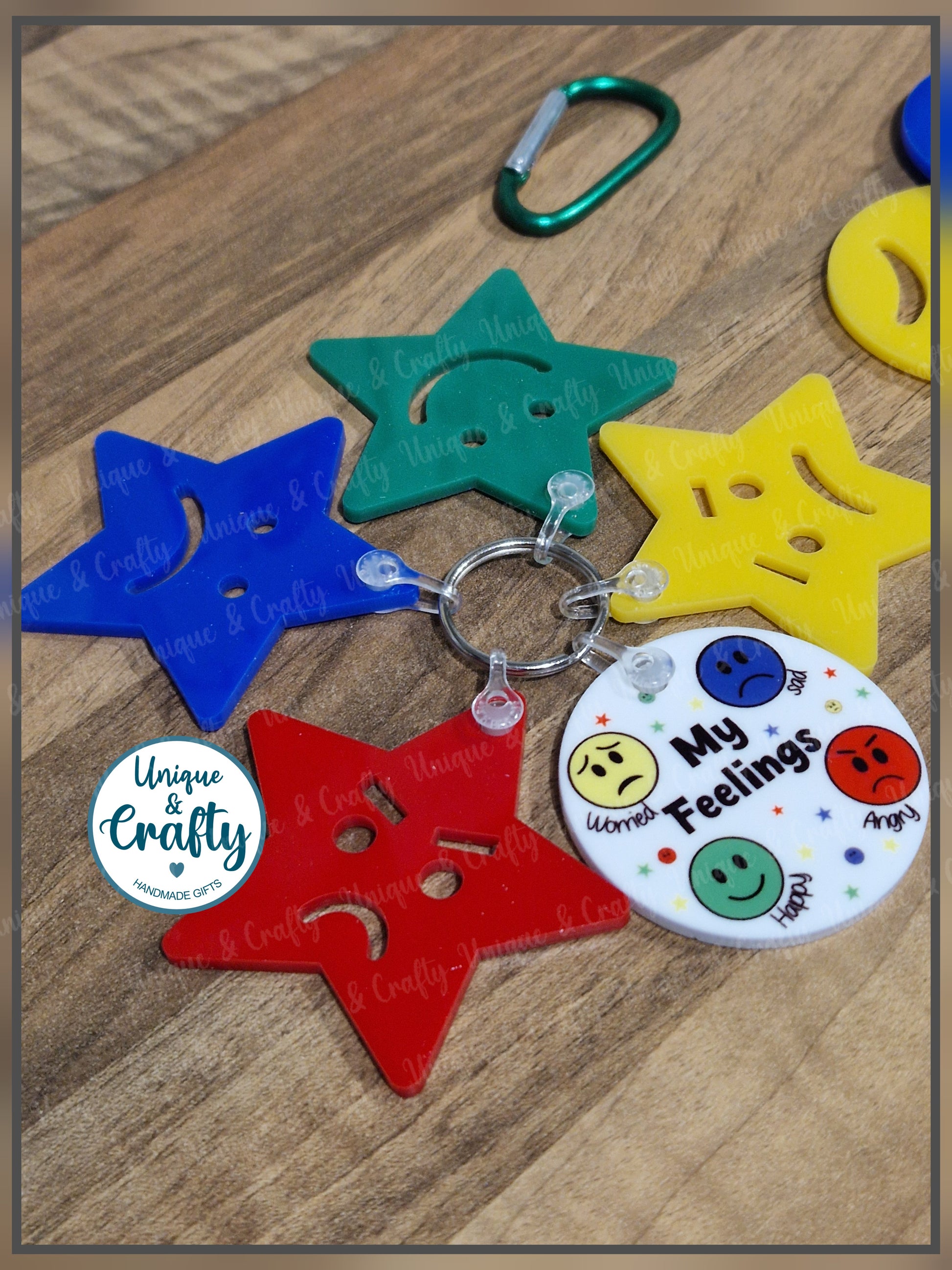 Each set includes 5cm acrylic discs showing a range of emotions – a simple, visual way to communicate feelings throughout the day.