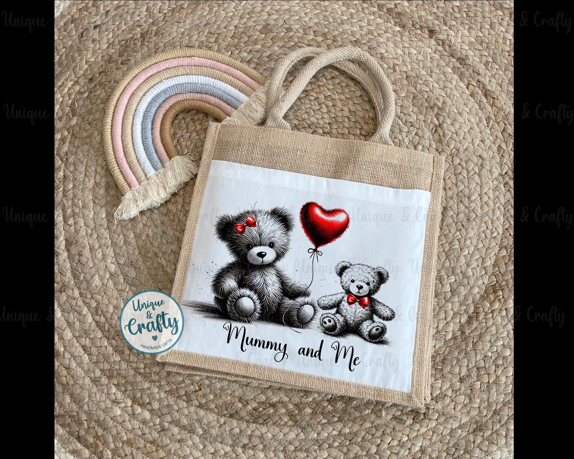 Mummy & Me Jute Small.. Mothers day, lunch bag, shopping